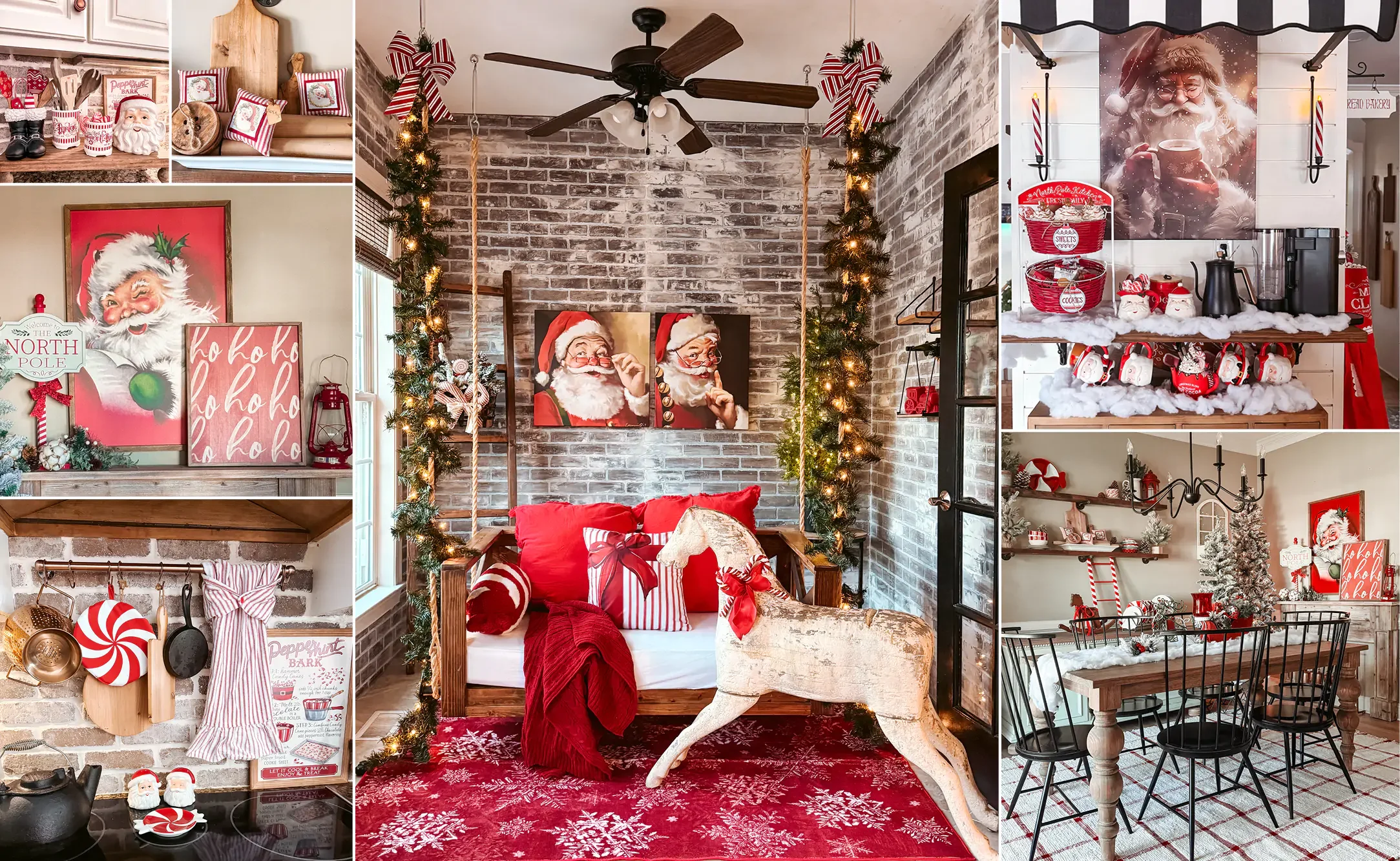 I am so excited to have partnered with Antique Farmhouse for this event! Here you can find everything from my red/ivory fringed area rugs, to my Hobby Horse Statue that I adore! Not to mention all the Santa goodies, from my Ho Ho Ho and Welcome Santa Wall art, to these adorable canvases over my swing! Then there’s the Santa Cream and sugar set, salt and pepper shakers, and tiered North Pole baskets! Oh, and did I mention that my beautiful pendent lights can also be found here!? Even more is in this event than pictured here, so check them out! Opens at 9am Est. on Thursday morning, Nov 13th!