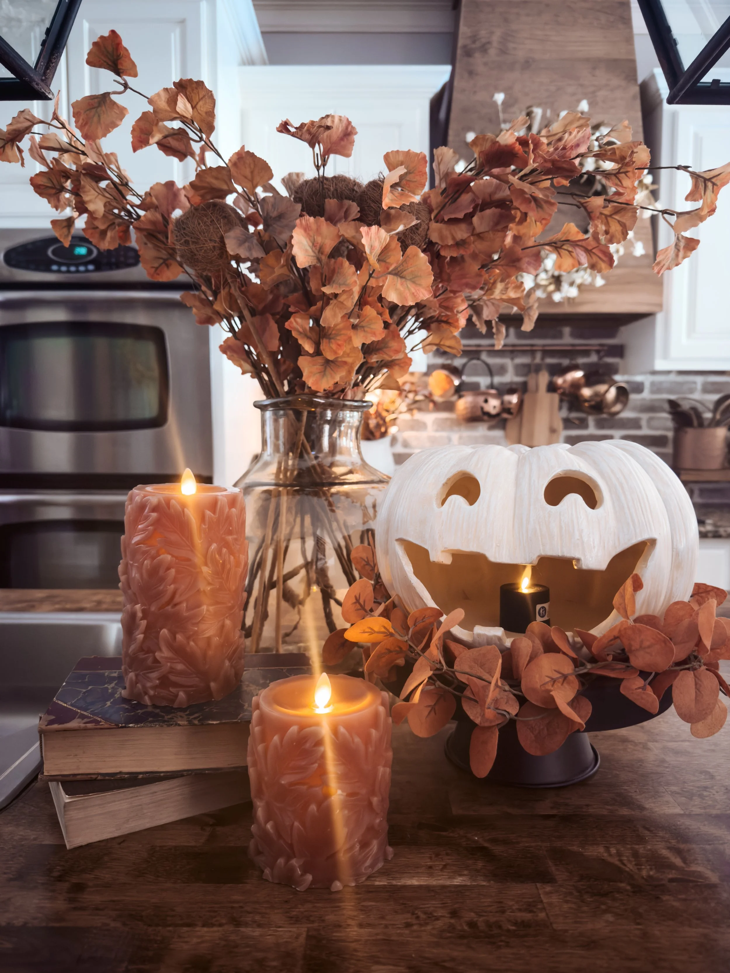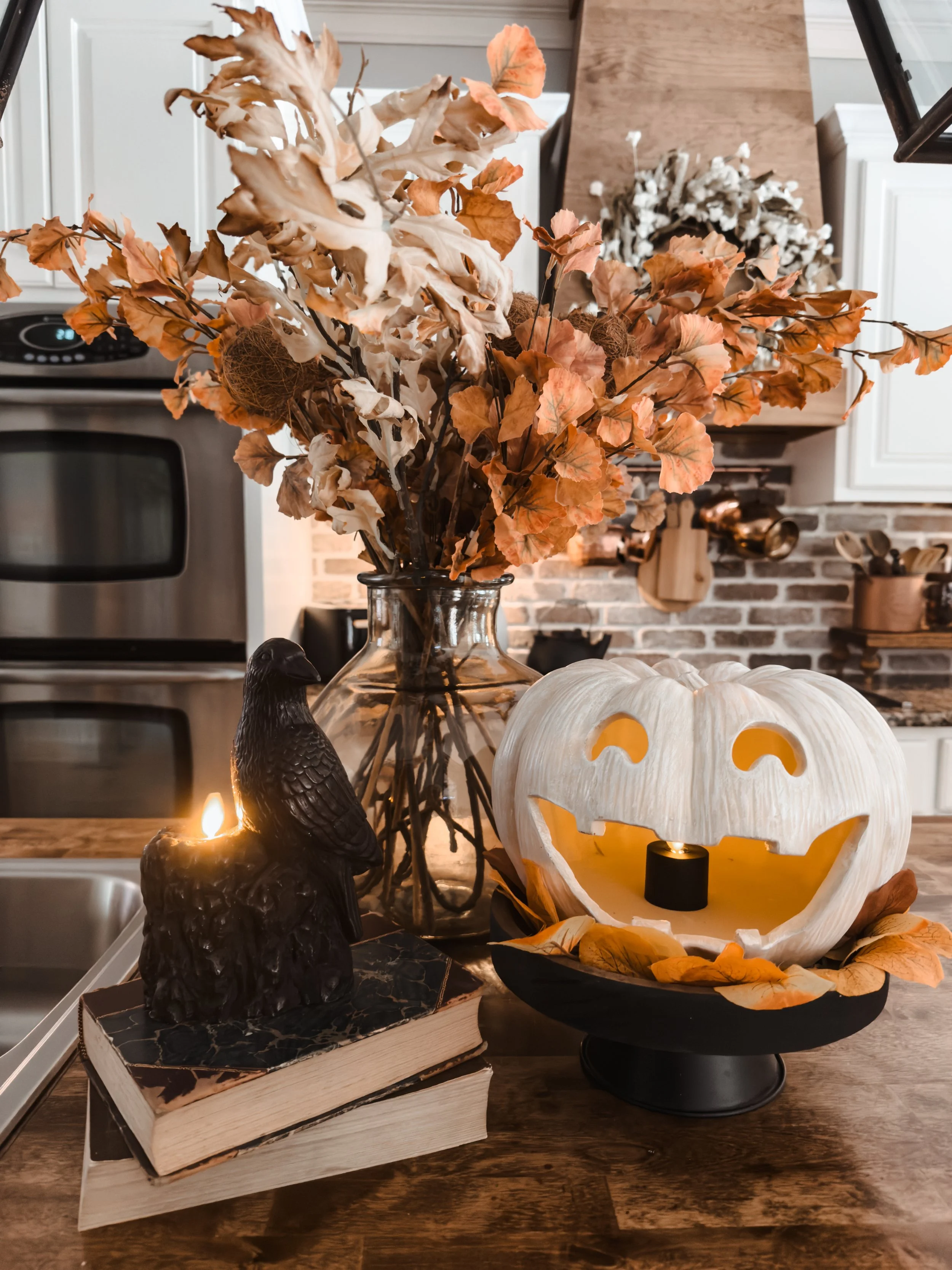 Introducing my newest Faux Flickering Fall Candles from Luminara! These embossed leaves are gorgeous and I love the caramel color! No matter which one is your vibe, I’ve got you covered! You can also find these adorable Jacks, set of 2, tea light candles (in black and Ivory), and of course my Perched Crow candle at Luminara!
