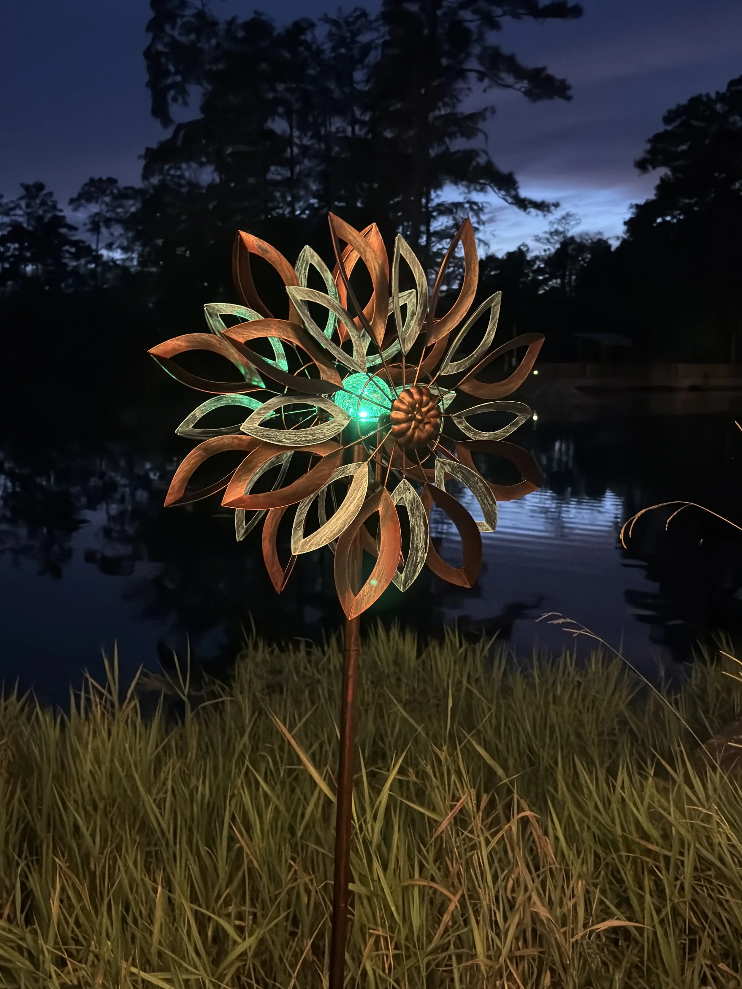 I first showed you my Autumn Symphony, garden wind spinner a few weeks ago, and it did so well, that Cyan Oasis asked me to be a permanent partner with them! This is great news for YOU, because now, I’m able to give you a 20% discount! They’ve sent me the Water Lily Solar wind spinner as well, that I put in my backyard this time, by the lake and firepit, and I’m obsessed! The light changes color and only come on at night! Get yours at either their site at Cyan Oasis, or my Amazon Storefront, and use my code below at both places! They have so many to choose from!