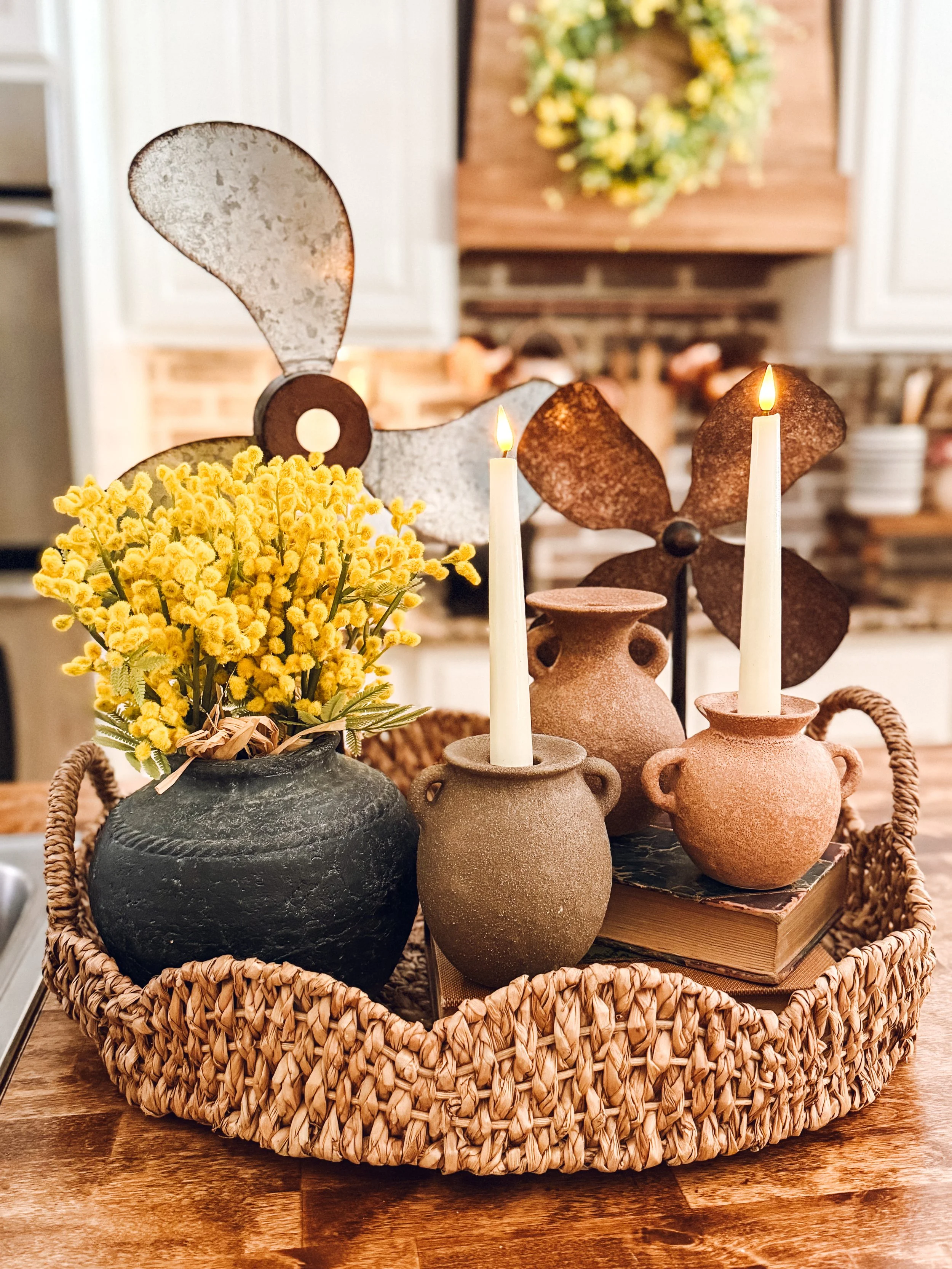 Do you love this burnt orange Penny Candle Ring from MJ Home Decor, as much as I do? It’s so versatile….so far I’ve used it as a candle ring, here on my tray, and I have one more idea that I’m gonna try! I love it!